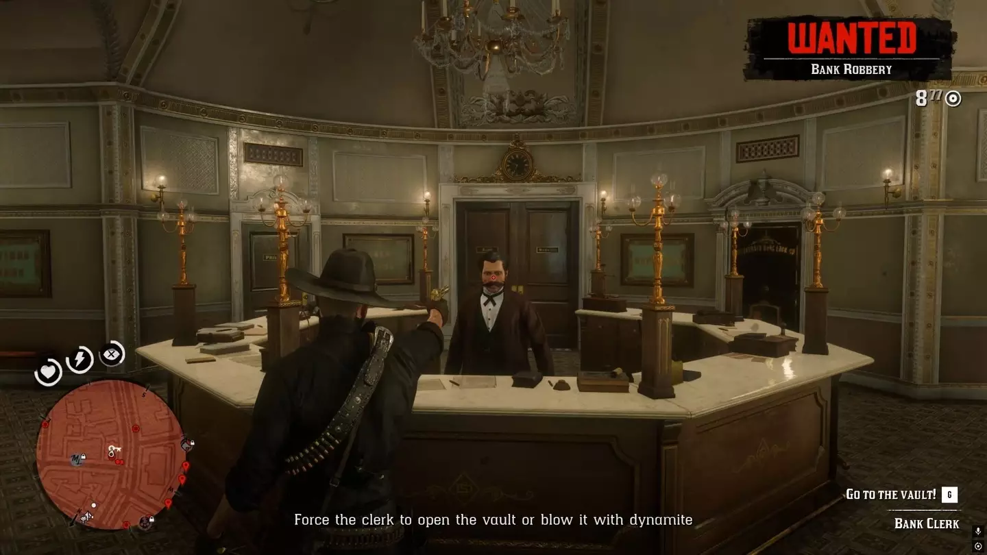 Seien Sie gewarnt, dass ein Bankraub mit einem Kopfgeld von 1.000 US-Dollar geahndet wird. Die potenzielle Belohnung hängt jedoch davon ab, aus wie vielen Safes Sie stehlen können, und es stehen mehrere Tausend Dollar zur Verfügung.