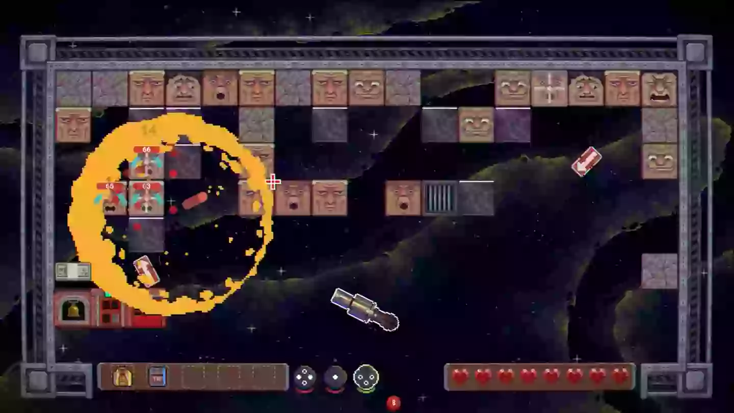 Stadien bestehen aus vielen verschiedenen Quadraten, von denen einige von den Brickmen besetzt sind. Normalerweise ist es das Ziel jeder Ebene, eine bestimmte Anzahl von ihnen zu beseitigen und manchmal auch spezielle feindliche Typen zu töten. Es geht also darum, auf die Feinde abzuzielen, die Sie als Teil des Ziels töten müssen, und gleichzeitig feindliche Ziegelmänner entfernt, die auch Sie ansprechen.