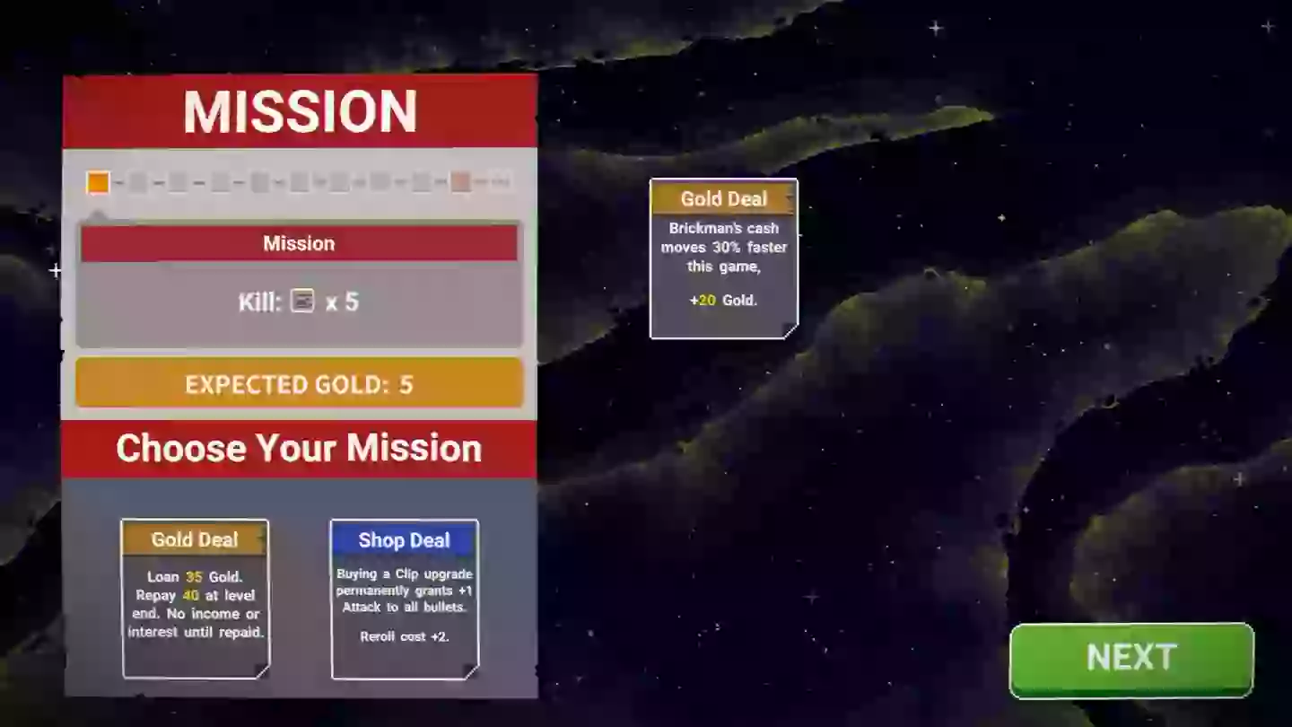Am Ende jeder Runde können Sie in den Laden gehen, um Ihre Clips zu aktualisieren, neue Kugeln zu kaufen und neue Missionen zu aktivieren, die Ihre Bemühungen langfristig helfen oder beeinträchtigen können. Insgesamt bedeutet dies, dass Sie nie den gleichen Lauf doppelt so sehen können, wie die Vielfalt in Feinden, Kugeln und Missionen dem Spiel einen großen Grad an Zufälligkeit verleiht.
